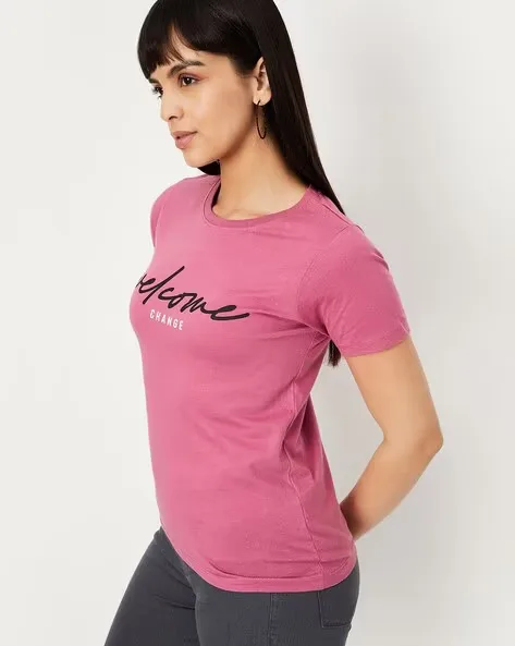 Women Typographic Print Regular Fit Round-Neck T-Shirt